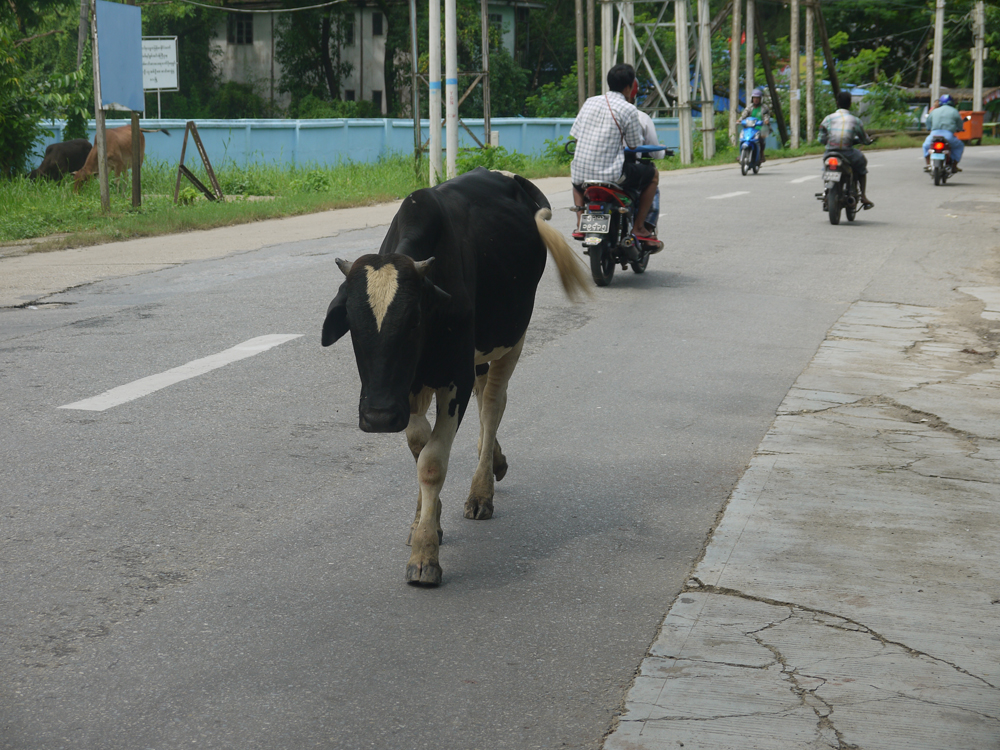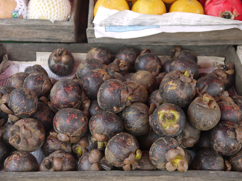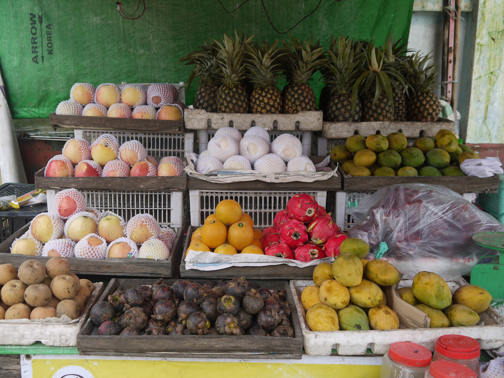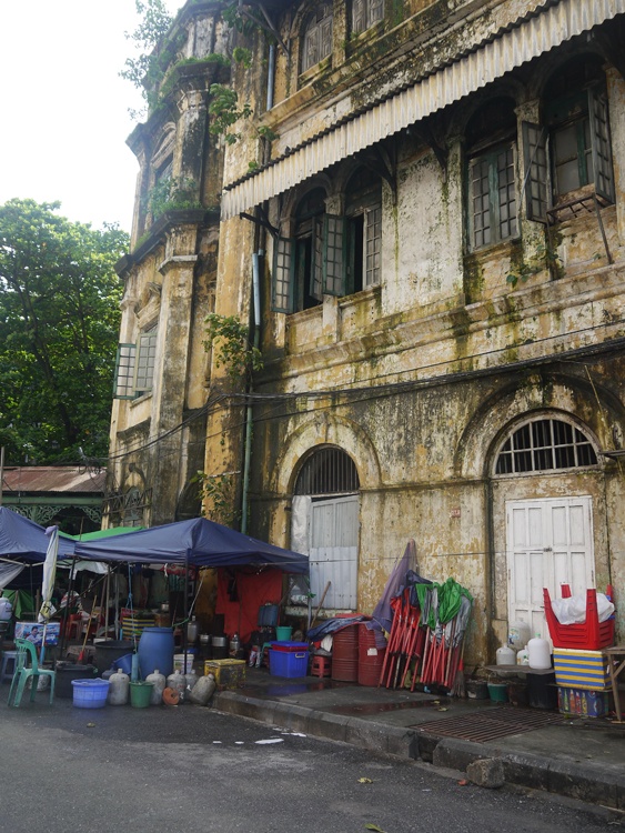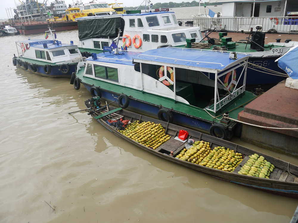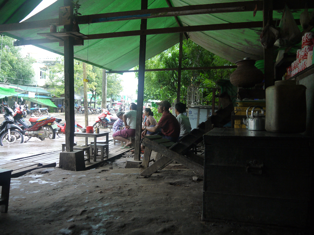 In Downtown zu leben – und sei es nur für eine kurze Zeit – ist eine schräge Erfahrung. Ich bekomme den Eindruck, dass wir so viel näher am Geschehen sind als wir es in unserer neuen Wohnung (seit zwei Monaten) in der Ma Po Street in Sanchaung sind. Direkt gegenüber von der Wohnung im achten Stockwerk finden wir viele kleine Kioske und einen Markt, auf dem Gemüse und Obst und schräges Obst und schräges Gemüse angepriesen werden. Direkt um die Ecke befindet sich ein indisches Restaurant, in dem Fast Food-ähnlich Thalis (große Teller mit verschiedenen Currys und Teigfladen: Puris, Chapatis, Parathas) oder verschiedene Currys (südindisches Cashew-Curry oder Kartoffel-Blumenkohl-Curry) zur Auswahl stehen. Zugegebenermaßen ist es nicht die feine indische Küche der Mittelklasse, doch lecker, schnell und günstig allemal.
