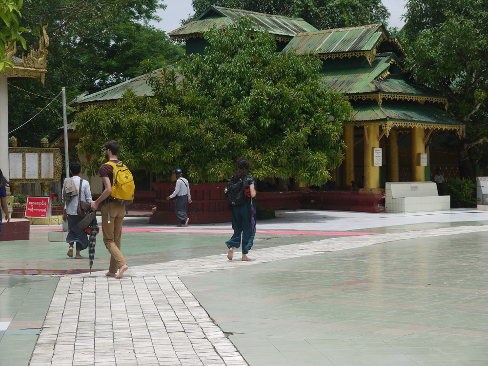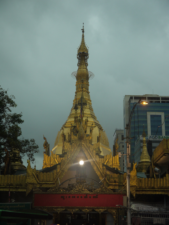 Streifzüge durch die Altstadt haben wir im letzten Monat aber doch ein paar mehr gemacht. Als meine Mitpraktikantin bei Search für zehn Tage verreiste, hatten wir die Möglichkeit, ihre Wohnung zu babysitten. Housekeeping nannte sie das. Für uns war es jedoch viel mehr als „In Schuss halten“. Die Wohnung lag ein paar Meter von der großen Sule Pagoda entfernt, die im Stadtzentrum – Downtown – liegt. Einst war sie von überall her sichtbar und wohl damals schon kleines Schwester-Wahrzeichen der Stadt neben der großen Pagoda. Heute ist sie ein Kreisverkehr. Verrückt eigentlich, dass ein Wahrzeichen wie die Sule Pagoda derartig ins Stadtbild eingelassen wurde. Doch wunderlich ist es letztlich auch nicht.