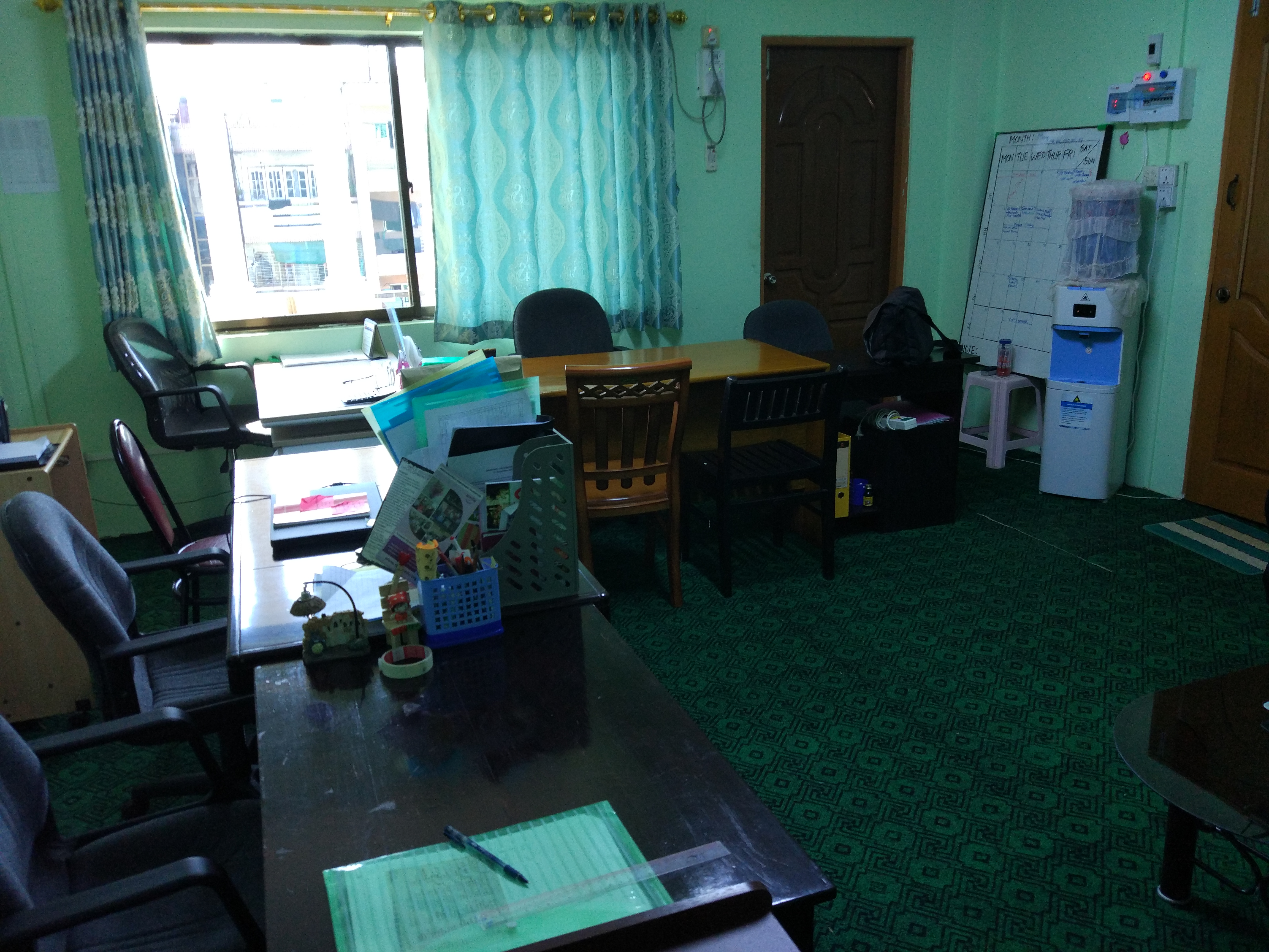 Die Arbeit fängt zwar erstmal etwas ernüchternd an, da in einer myanmarischen Organisation einfach alles etwas unprofessioneller abläuft als in vielen westlichen. Es fing damit an, dass mir trotz einer Nachfrage nicht mitgeteilt wurde, wann es eigentlich losgeht. Und als dann auch noch jemand aus einer anderen Organisation felsenfest davon überzeugt war, dass meine Organisation – Smile – umgezogen war und meine Adresse nicht mehr stimmte, war die Verwirrung komplett. So wartete ich morgens erstmal lange, um jemanden zu erreichen. Aber der Umzug stellte sich dann schließlich zwar als großes Missverständnis heraus und ich kam erst gegen 11 Uhr zu Arbeit. Doch da ich eh noch keine Arbeitszeiten hatte, war das irgendwie auch egal. Malins Search for Common Ground ist da deutlich besser organisiert und hatte alles schon im Voraus geklärt. Auch, dass sie einen Laptop brauchte, wurde ihr vorher mitgeteilt. Mir hat man so etwas nicht gesagt. Davon aber etwas aufgeschreckt, packte ich auch mal vorsichtshalber meinen Laptop ein, nur um auf Nummer sicher zu gehen. Und erste Frage im Büro: “Hast du deinen Laptop dabei?”