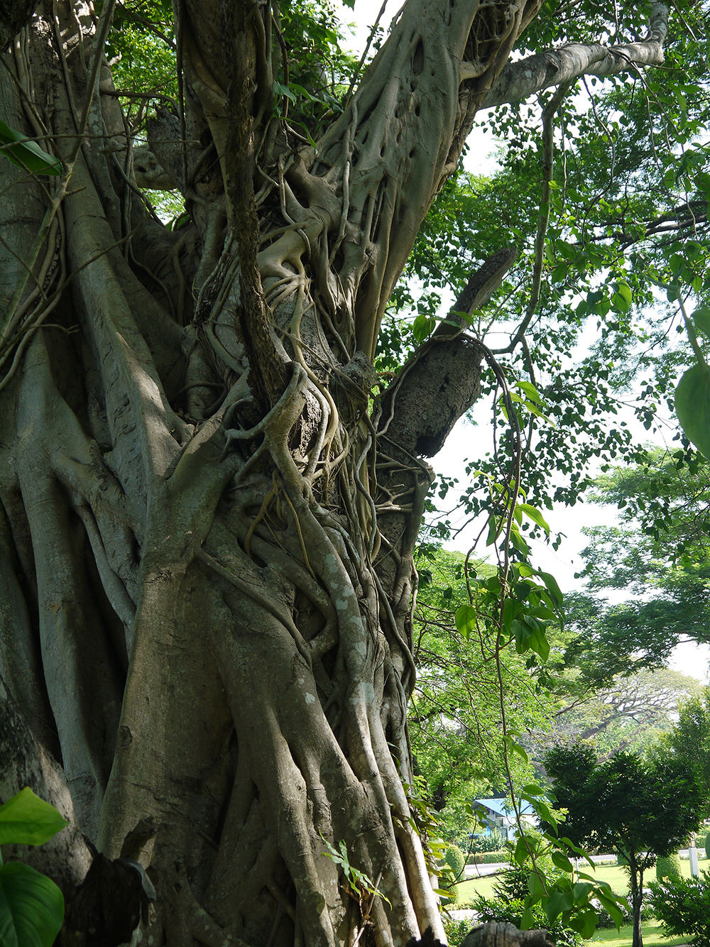 Angemessen ist auch das Blätterdach der Hunderten Bäume im People‘s Park, der grünen Oase der Stadt. Hier reihen sich sämtliche Exemplare des botanischen Gartens in Berlin dicht an dicht aneinander. So spenden sie nicht nur Schatten, sondern sorgen auch für ein wunderbar angenehmes Klima, in dem man schnell die Großstadt vergisst, in der man sich befindet. Erstaunt bin ich vor allem aber von der Hängebrücke, die zwischen ein paar enormen Bäumen hängt und zum Blick in die Baumkronen einlädt. Hier ist es wirklich fantastisch und bietet einen tollen Ort, um mal in den Büchern über Myanmar zu blättern oder die Eindrücke der Stadt zu verarbeiten.