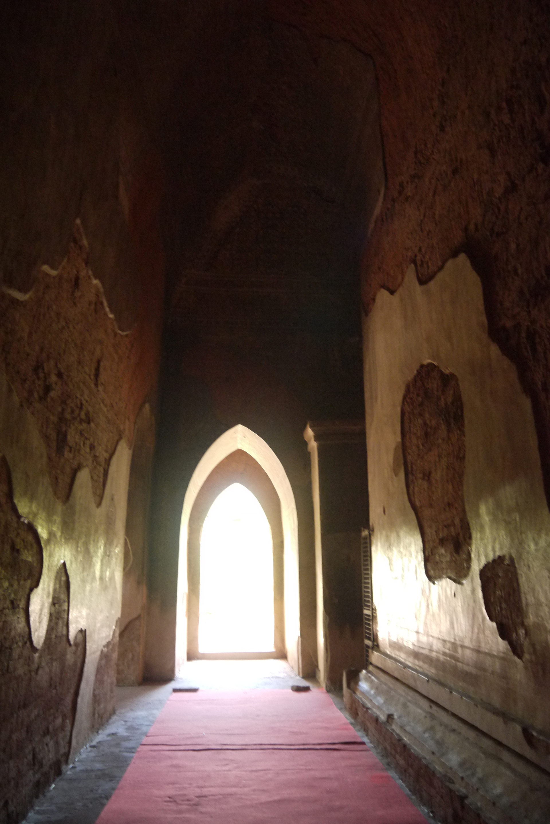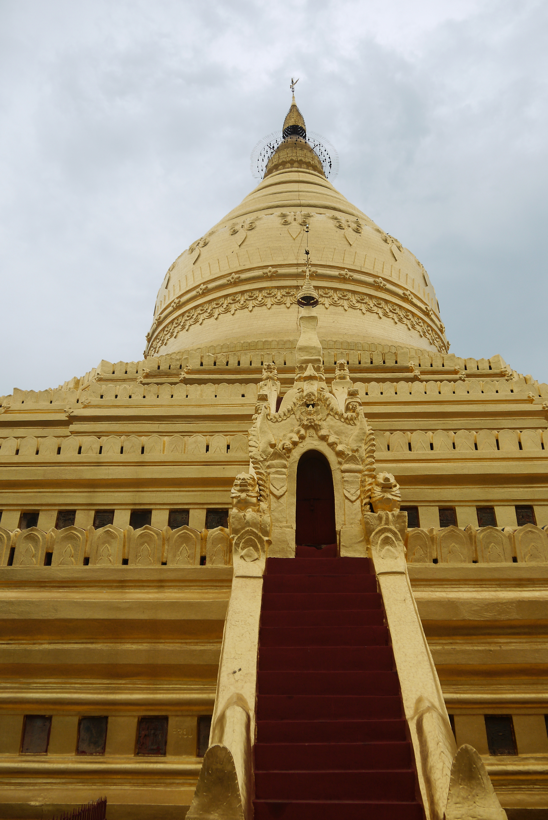 Der Gang zur Shwezigon Paya mag nun nicht wirklich sauber und bezaubernd sein, aber ich fand ihn sowohl architektonisch als auch symbolisch einfach genial. Besucher betreten die monströse Pagode nicht einfach so, sondern werden erst durch einen langen weiten Gang geführt, der schließlich nach einigen Verkaufsständen in der Pagode mündet. Eine spannende Idee! Wie wäre es, wenn man zur Kirche erst einmal zehn Minuten durch einen Säulen-gesäumten Gang gehen müsse? Die Reise lohnt sich. Man kann sich hier wunderbar treiben lassen und Tempel erobern, wie es einem gefällt. Nicht oft habe ich es an einem derartig bekannten Ort erlebt, dass man ewig durch eine völlige Einöde fährt und nur Tempeln begegnet. Nicht oft hatte ich solch ein Gefühl von Einzigartigkeit, die jedem Besucher entgegen gebracht wird. Und selten konnte ich derartig frei auf Entdeckungstour gehen. Lohnt sich!